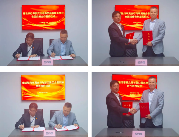 郑元生和高纪忠代表双方分别签署了建设银行奉贤支行与商会、悠口园区全面战略合作协议