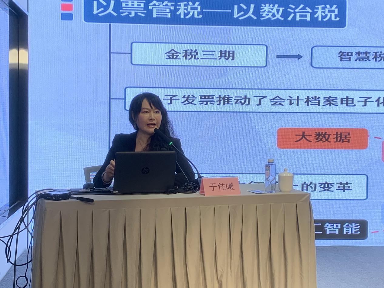 培训会上,经济学博士、国家税务总局干部进修学院副教授于佳曦围绕《智慧税务建设和严征管格局下的企业涉税风险分析》的话题,详细讲解了智慧税务建设与严征管格局的形成、互联网和财务报表涉税风险分析及防范等方面内容,在交流互动环节,针对与会人员提出的疑难困惑一一进行解答,现场气氛热烈。