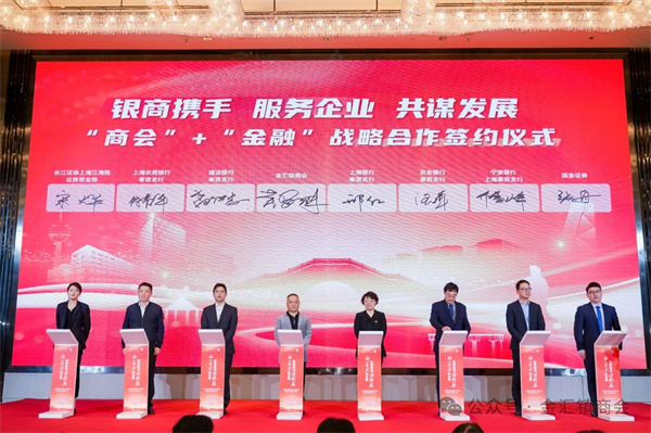金汇镇商会、上海银行奉贤支行、建设银行奉贤支行、农业银行奉贤支行、上海农商银行奉贤支行、宁波银行上海奉贤支行、长江证券上海江海路证券营业部、国金证券签订战略合作协议。