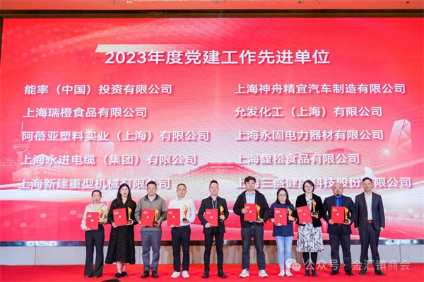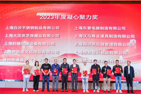 镇商会党建指导员胡藕松为2023年度凝心聚力奖单位颁奖。