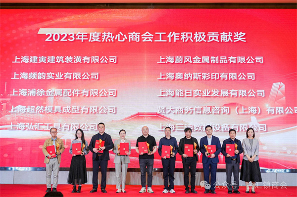 镇人大副主席、总工会主席张群贤为2023年度热心商会工作积极贡献奖单位颁奖。