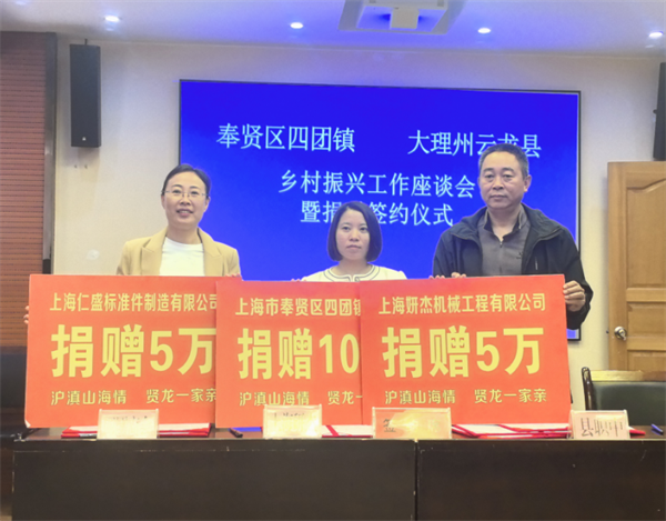 四团镇商会、上海仁盛标准件制造有限公司、上海妍杰机械工程有限公司与云龙职中签订捐赠协议,捐赠项目资金20万元。