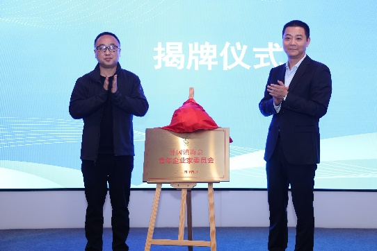 蔡丽琴为外冈镇商会青年企业家委员会代表颁发聘书。陈攀、朱琤宇为外冈镇商会青年企业家委员会揭牌。