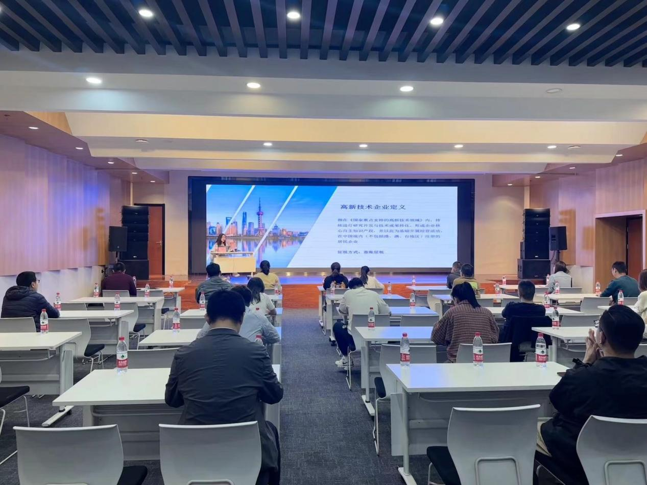 上海市高新技术企业认定办公室的吴蓓蕾老师和南翔镇人才服务中心的韦华老师分别就高新技术企业认定和人才政策进行了宣讲。吴蓓蕾分别从认定条件、评分标准、认定程序、相关政策等几个方面进行了详细说明,重点针对高企材料整理和系统填报、财务归集等内容进行了讲解。韦华围绕技能人才培养、人才政策申报与奖励等方面与企业负责人进行互动,他强调,人才“基本盘”的做大和人才“领头羊”的培育是相辅相成的,希望政企形成工作合力,以培养创新型、实用型技术技能人才为突破口,实现人才建设与企业高质量发展“同频共振”。