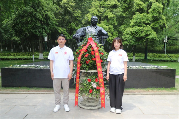 随后,大家来到邓小平铜像广场,怀着崇敬的心情向邓小平铜像敬献花篮,鞠躬行礼,缅怀邓小平的丰功伟绩。