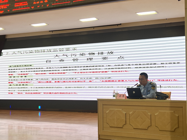 关策作环保专题授课,主要宣讲了生态环境保护法律与法规简介,从重点行业、污染物监管要求及检查要点,固定污染源自动监控守法要点,近期专项检查发现较普遍的问题三个方面进行宣讲。