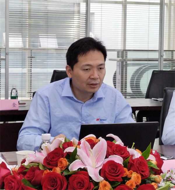 潘诗良介绍了奉贤区安徽商会的基本情况,并高度评价了纽威数控装备在高端数控装备领域的研发实力和市场竞争力。他强调,纽威数控装备作为中国百大工业母机企业,是商会会员企业学习的榜样,期待未来双方在技术研发、市场拓展等方面深化合作,共同推动中国制造业的转型升级,实现高质量发展。