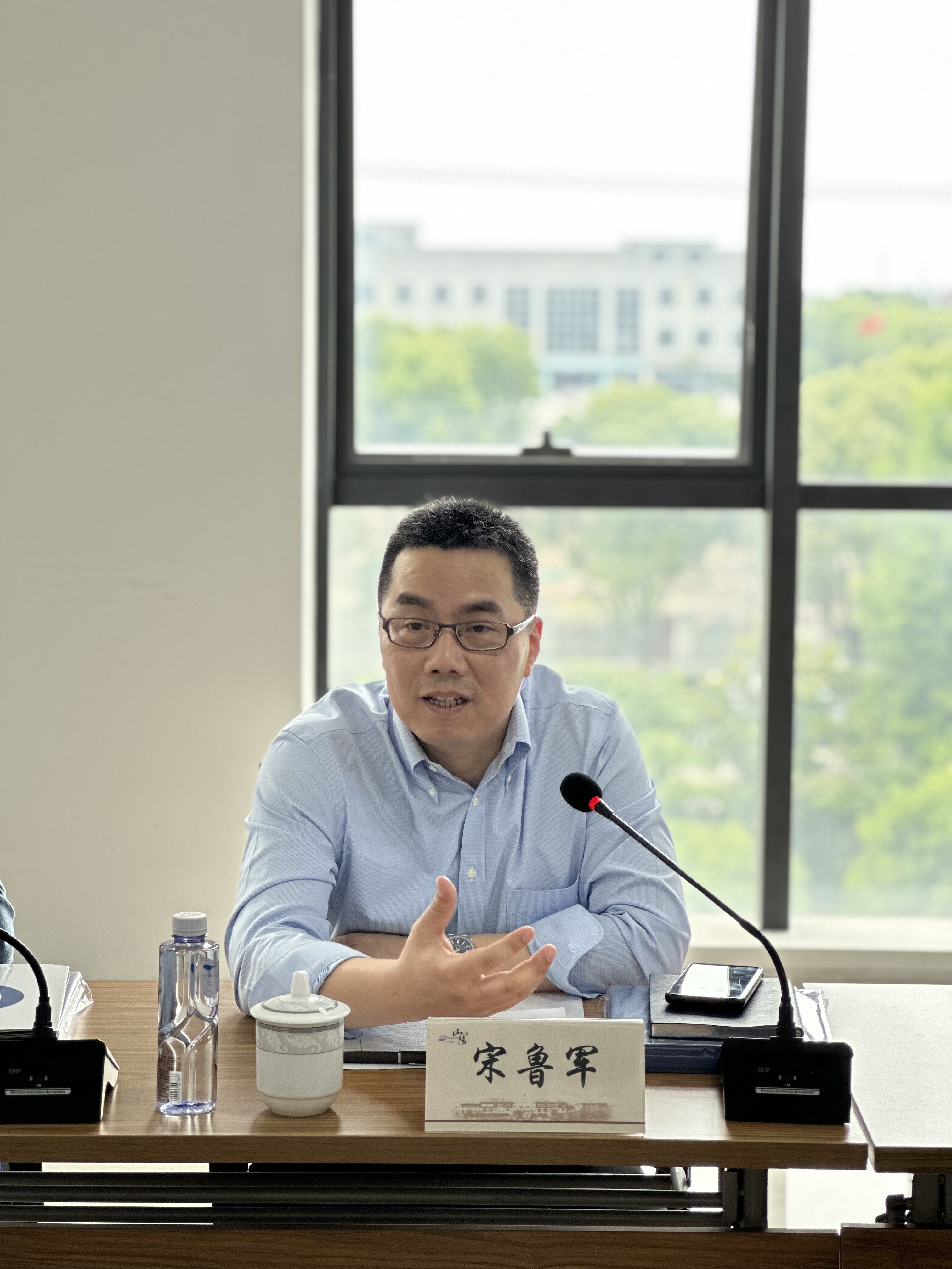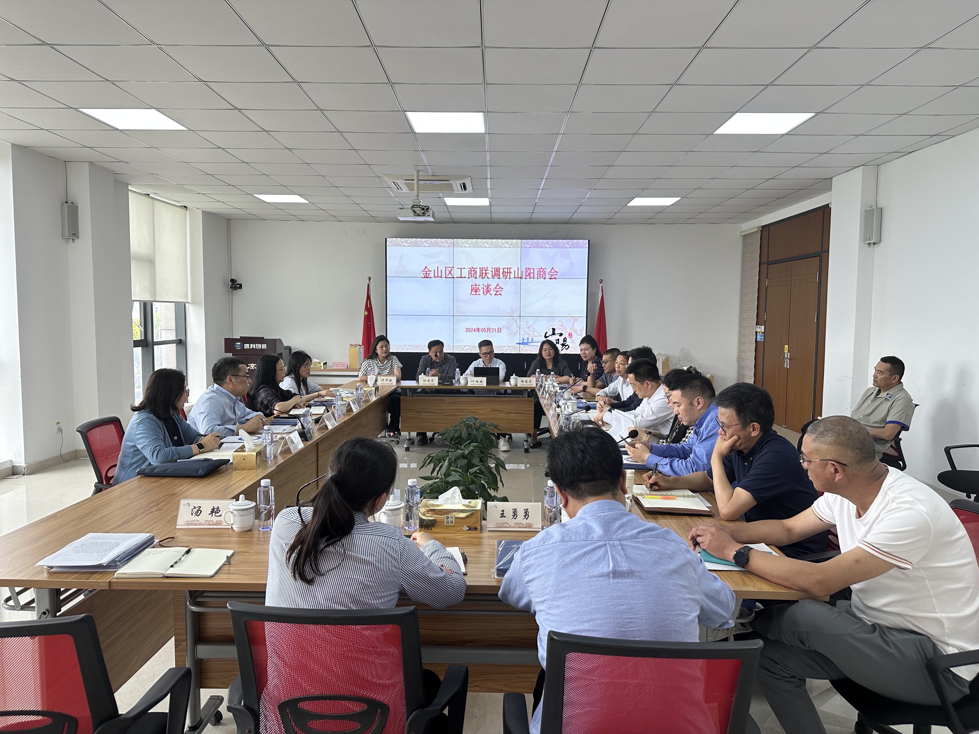 5月21日下午,金山区委统战部副部长、区工商联党组书记宋鲁军一行到山阳镇商会开展工作调研,镇党委副书记周顺风、镇党委委员俞红陪同。