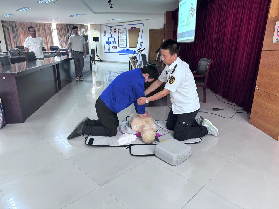 培训特别邀请了区卫健委冯明亮老师围绕心肺复苏+AED操作方法,中暑、晕倒等突发事件的急救,海姆立克急救法等作了专题救护培训。现场学员通过认真学习反复实践后纷纷表示受益匪浅。