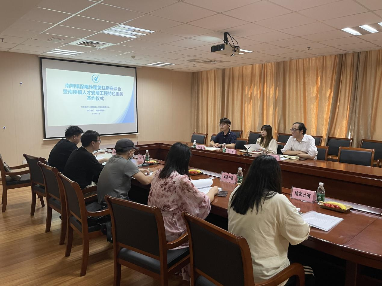 为进一步完善企业服务体系,整合各方资源,围绕企业需求提供特色服务,5月24日上午,嘉定区南翔镇保障性租赁住房座谈会暨南翔镇人才安居工程特色服务签约仪式顺利举行。本活动由镇人才综合服务中心主办、镇商会协办,柚米寓南翔店、小新公寓等5家保障性租赁住房项目代表参加。镇人才服务中心负责人、镇商会秘书长沈葭主持会议。