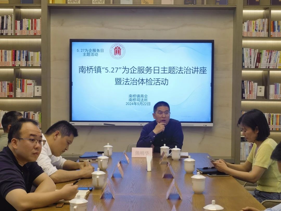 为进一步增强民营企业法治意识,有效解决企业在发展过程中面临的法律难题,5月22日下午,奉贤区南桥镇商会联合南桥司法所开展“5·27”为企服务日主题法治讲座暨法治体检活动。南桥镇商会22家中小民营企业管理人员参加活动。