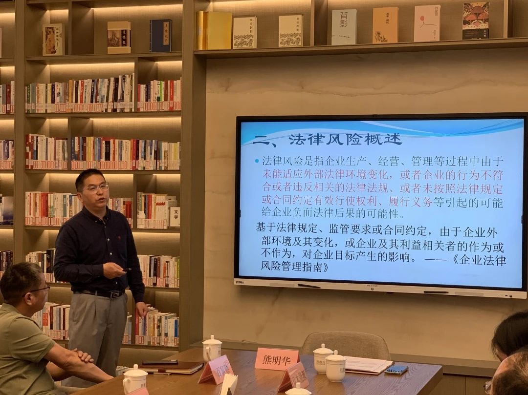 本次讲座邀请上海市昆仑律师事务所熊明华律师作《企业法律风险与防范》法治讲座,活动通过法律宣传、案例警示、互动问答的形式,分析中小企业法律风险防控现状、特点、成因和可能导致的法律责任,提示民营企业在面临法律风险时所具备的风险意识、风险识别、风险评估和风险防范,并就如何防范法律风险提出相关建议,要求企业管理人员强化法律风险意识,规范企业规章制度和合同管理,依法经营,确保企业可持续健康发展。