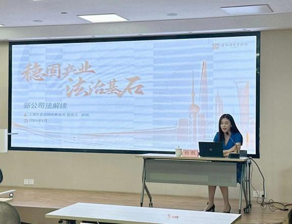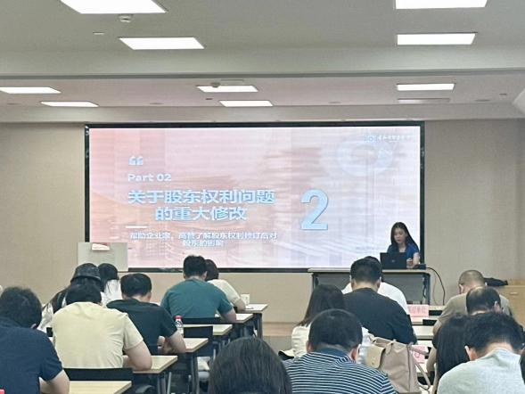 讲座由商会监事长杨帆主讲,杨帆以新《公司法》重大修订条款为切入点,全面梳理各章节的变动内容,细致深入地讲解了如何有效规避和化解风险。同时通过大量的案例,生动形象地列举了违反新《公司法》的具体行为,并提出针对性的解决方案,确保企业的合规运营。