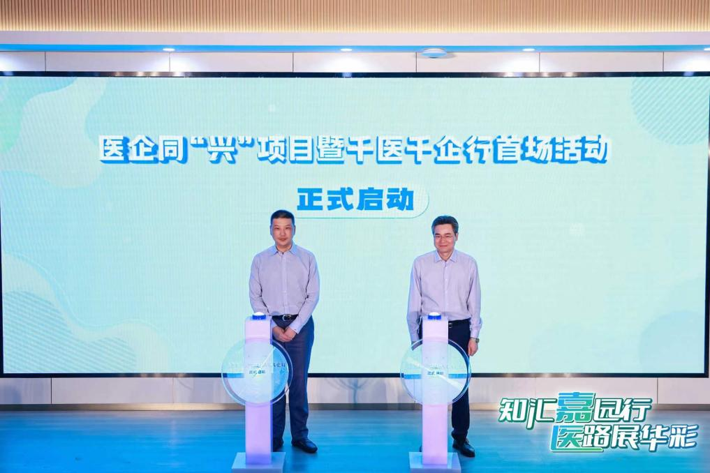 5月30日下午,嘉定区中心医院党委书记谢岳林,区工商联副主席、华亭镇商会会长、上海杰宝大王企业发展有限公司董事长顾杰共同启动医企同“兴”项目暨千医千企行首场活动。