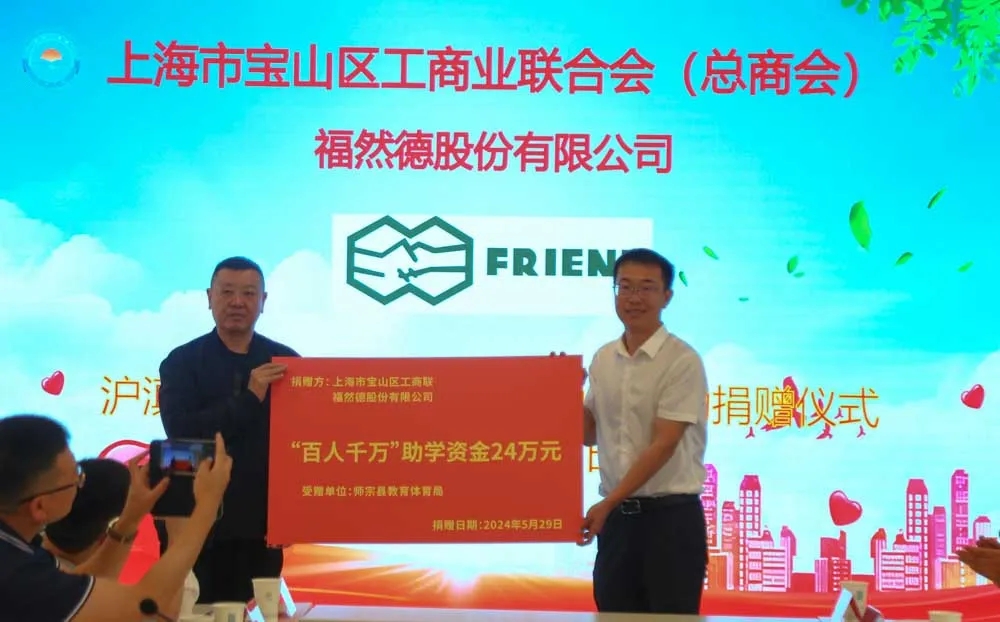 5月29日上午,在师宗县电商创意园二楼会议室,进行了沪滇公益项目爱心帮扶活动捐赠仪式。活动中,福然德股份有限公司向师宗县教育体育局捐赠“百人千万”助学资金24万元,为当地教育事业注入新的活力。今年是“福然德百人千万公益发展计划”开展的第五年,目前,该项目已成功资助了60余名贫困大学生,助力他们在求学道路上顺利拼搏、全面发展。