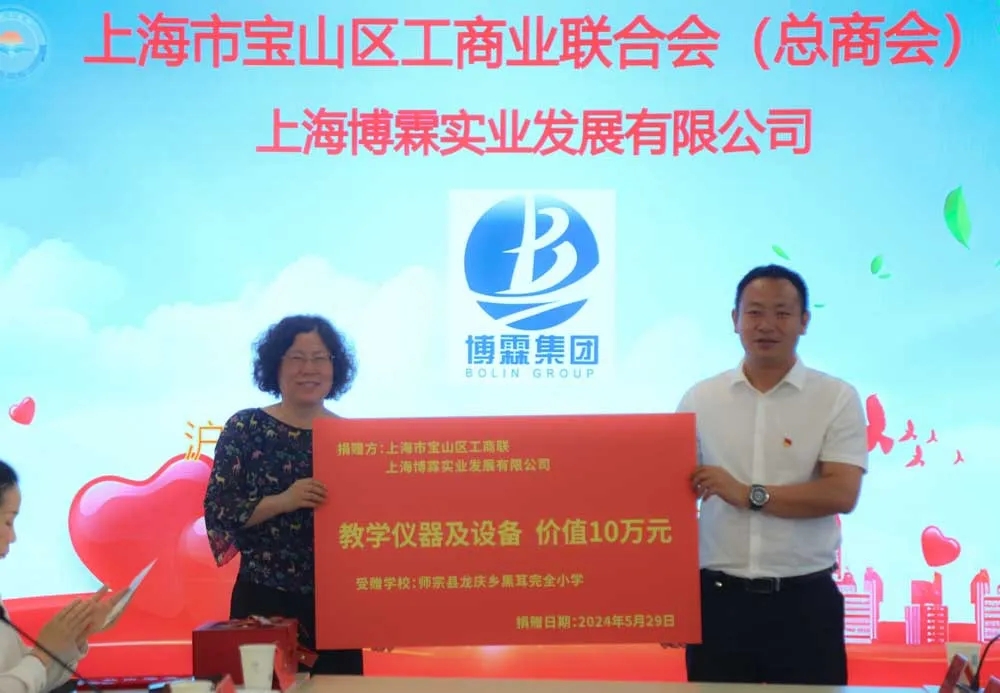上海新通联包装股份有限公司通过来伊份公益基金会向师宗县林业和草原局捐赠20万元专项公益基金,以支持当地生态环境建设,赋能乡村绿色发展,引领生态振兴。这已是“新通联行道树专项基金”连续第二年支持“绿美师宗”项目,落地后将惠及10个乡、镇、街道。上海博霖实业发展有限公司向师宗县龙庆乡黑耳完全小学捐赠了价值10万元的教学仪器及设备,用于改善学校办学条件,进一步激发学生们的学习兴趣与潜能。
