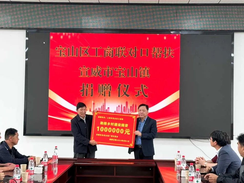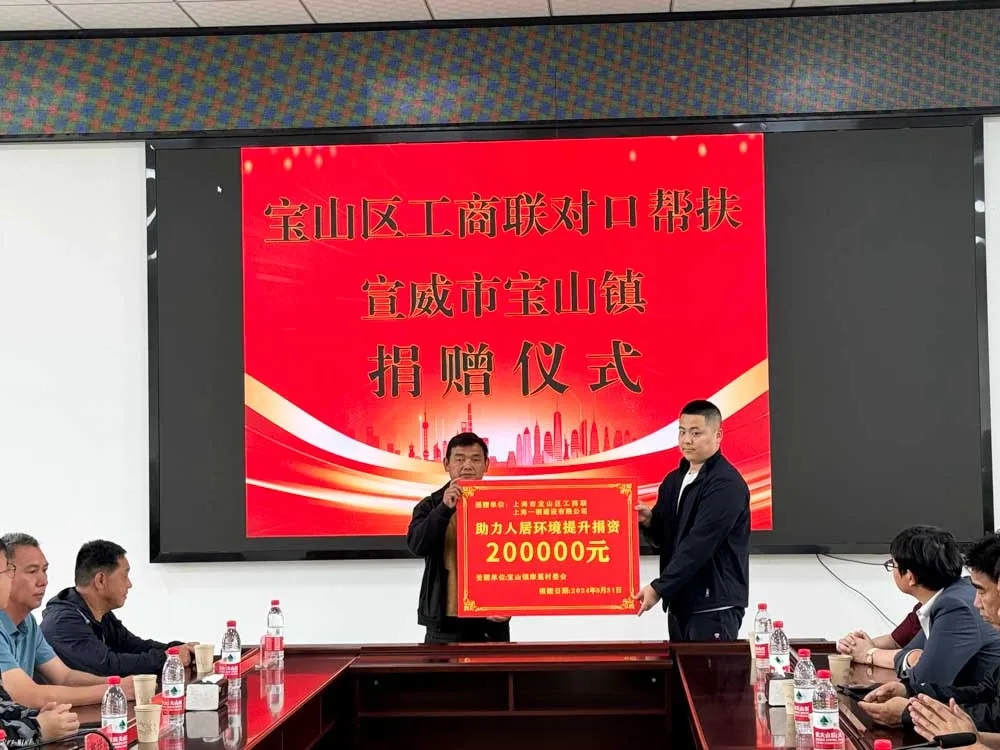 5月31日上午,在宝山区工商联对口帮扶宣威市宝山镇捐赠仪式上,宝山区工商联代表区内12家民营企业向宝山镇厂房村捐款100万元;上海一钢建设有限公司向宝山镇摩戛村捐款20万元,助力进一步打造美丽村庄、提升人居环境,预计建设项目将惠及群众150户459人。
