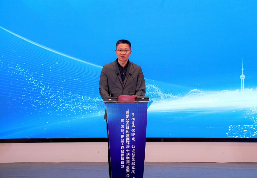 为进一步贯彻落实市工商联、市公安局联系沟通机制的具体举措,合力打造嘉定区法治化营商环境,推动民营经济高质量发展,6月7日上午,嘉定区工商联、区公安分局联合举办“多措并举优环境 公安智慧助发展”——“嘉定公安优化营商环境十项举措”发布会暨“蓝鲸”护企工作站揭牌仪式。区委常委、统战部部长唐晓林,副区长、区公安分局局长瞿炜出席活动并讲话。
