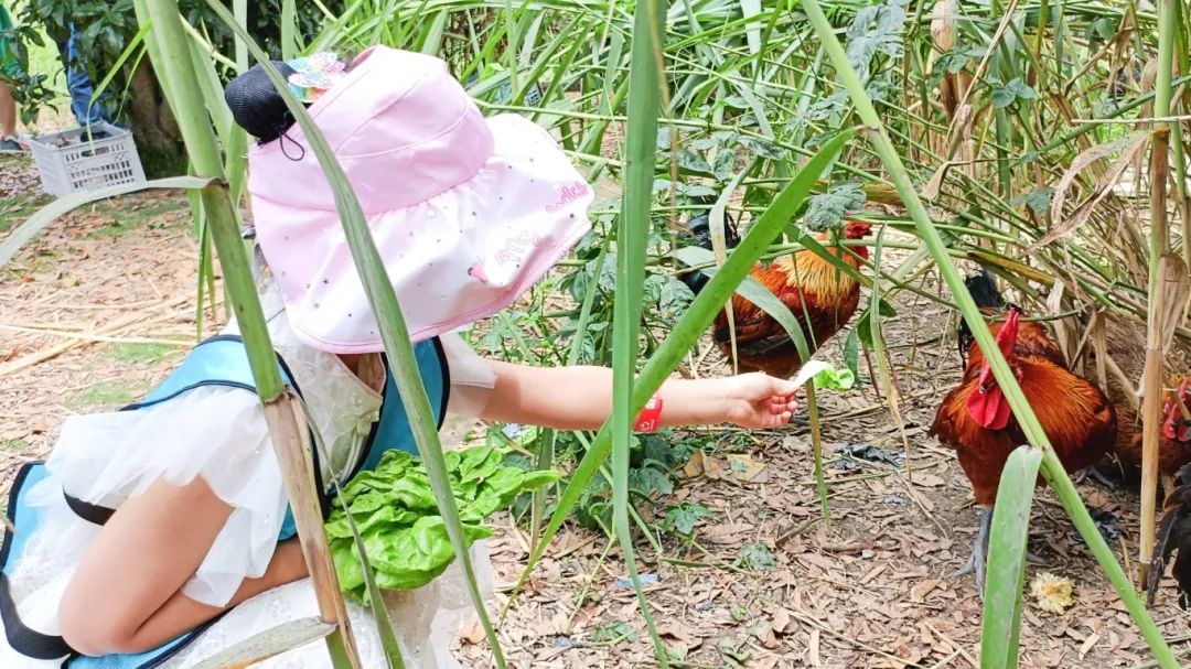 活动中,区青创联会员携子女近距离观察探索咕咕鸡的生活习性,用新鲜菜叶喂鸡,捡拾新鲜鸡蛋,体验养鸡人的乐趣;下地劳动,亲手摘下鲜翠欲滴的生菜;生起柴火灶,感受到传统野趣的魅力;围炉共享美食,感受初夏的美好时光。