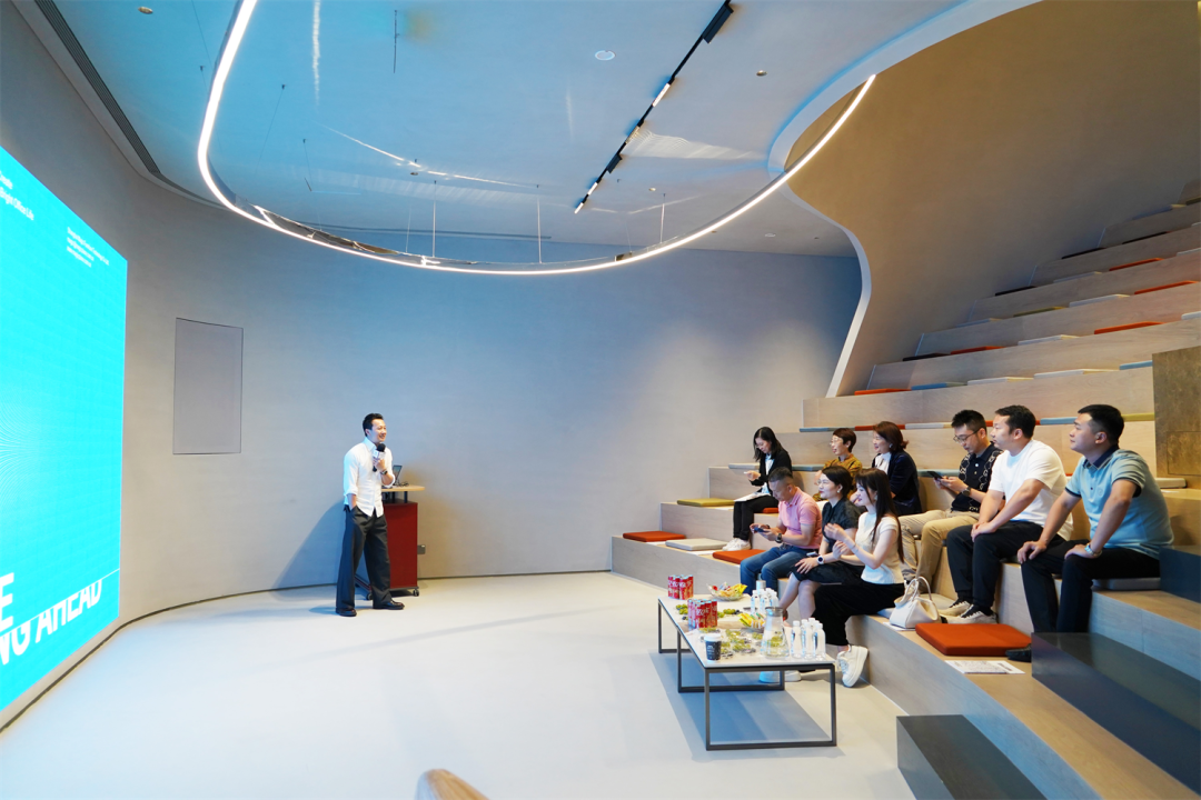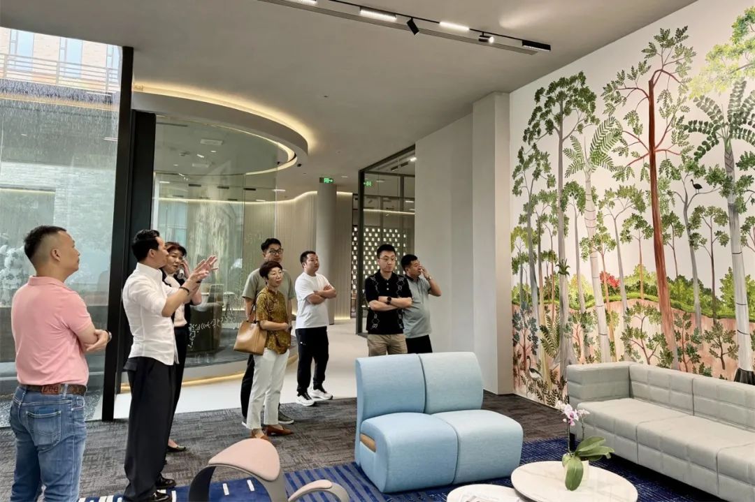 在交流环节,戴志勇详细讲解了MAGIC PLACE办公生活体验馆的设计理念与功能特色,以及其在产业升级和文创美学生活领域所取得的新突破。青年企业家们纷纷表示,此次参观交流收获颇丰,不仅学习了美稷集团的成功经验,也激发了对未来办公生活方式创新趋势的深入思考。