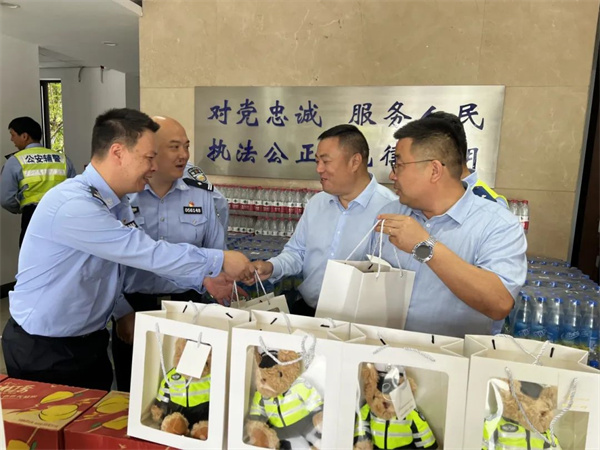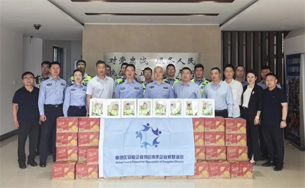 为进一步增进警企共建,表达对一线执勤人员的诚挚问候和敬意,近日,奉贤区安徽商会执行会长、青商会会长范磊带队前往南桥交警一大队、奉城交警四大队开展“夏日送清凉”活动。商会副会长吴飞,商会会员孙广升、程进霞,青商会副秘书长潘常桂,青商会理事宋呈祥,青商会会员刘得强等参加活动。