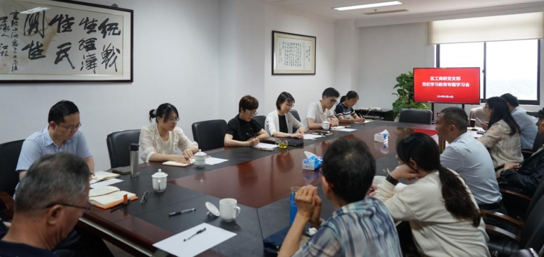 根据党纪学习教育工作安排,6月24日下午,嘉定区工商联党支部召开“严守六大纪律 筑牢思想根基”党纪学习教育专题学习会,区委统战部副部长、区工商联党组书记王宇伟出席并讲话,区工商联党支部书记季虹主持,区委党纪学习教育工作专班相关同志到会指导,区工商联全体党员干部、部分退休老党员参加。
