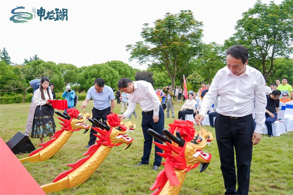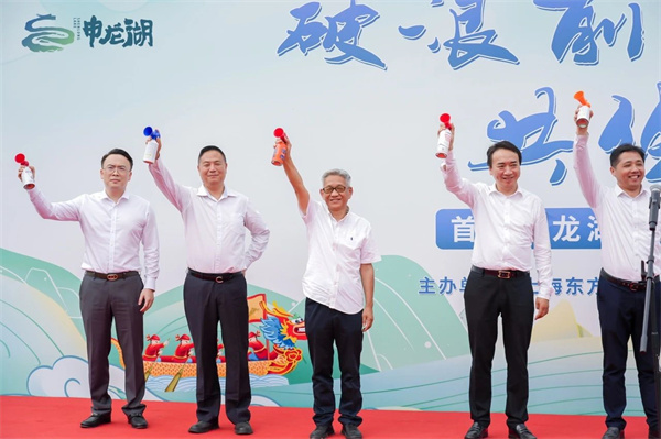 本次龙舟邀请赛由上海东方金融小镇主办,得到了奉贤区文旅局、区体育局、区文联和青村镇的大力支持。区体育局局长陈文浩,青村镇党委书记刘伟,金融小镇党委书记、董事长张青共同为龙舟点睛,为参赛队伍祈福、鼓劲。随着奉贤区人大常委会原副主任、区文联主席陆建国宣布开赛,各位代表共同鸣笛,正式拉开龙舟赛的帷幕。