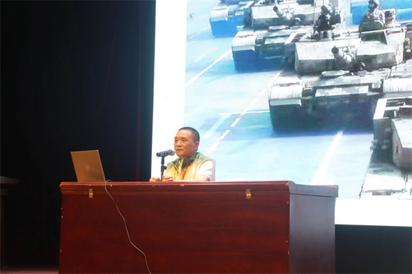 在活动中,他结合自己的亲身经历和深刻感悟,为大家详细讲述了那段对越自卫反击战波澜壮阔的历史。在他的讲述中,大家仿佛穿越时空,亲身感受到了革命前辈们的英勇无畏和坚定信念。他勉励同学们:作为新时代的青年,应当铭记历史,向革命先烈学习,学习他们的坚定信仰、勇于担当、为民服务、锐意进取的开拓创新精神,时刻铭记肩负的历史使命和责任担当,用实际行动致敬英烈,守护祖国的繁荣稳定。