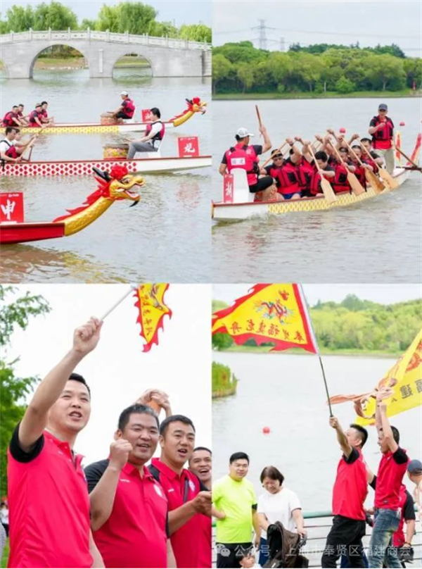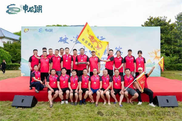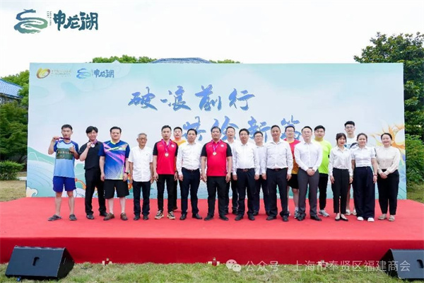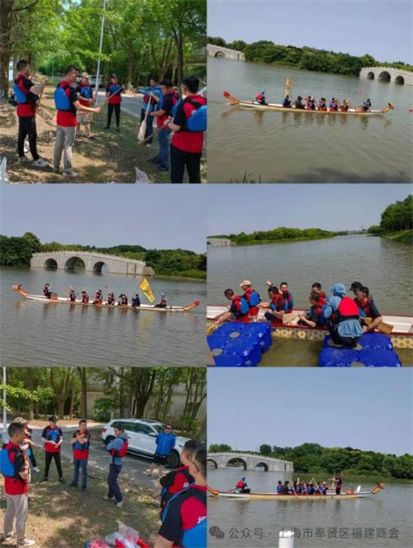 近日,奉贤区福建商会受邀参加由上海东方金融小镇举办的以“破浪前行 共绘新篇”为主题的首届申龙湖龙舟邀请赛。本次龙舟赛共有12支队伍参赛,赛事地点设在美丽的奉贤区申龙湖,赛程为300米的直道计时竞速赛。
