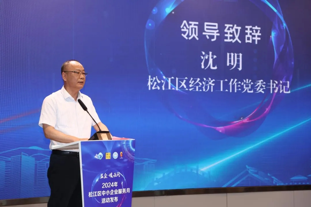 区经济工作党委书记沈明致辞。他表示,在区委、区政府带领下,松江的“企业服务”将紧跟发展步伐走深走实,建立政府协同的伙伴合作关系,发扬“金牌店小二”精神,当好企业“娘家人”,确保让更多企业受益,奋力实现企业服务再上新台阶。