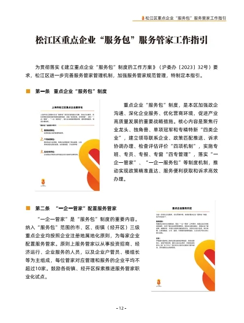 发布《松江区重点企业“服务包”服务管家工作指引》,强化服务管家管理机制,深化企业服务,让“政企”之间平等对话、沟通无碍。
