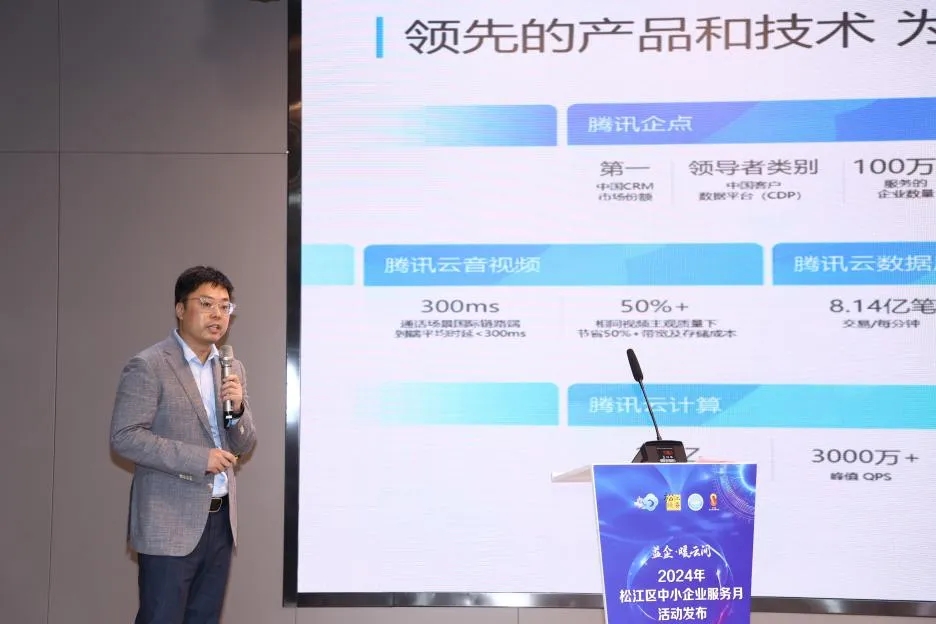腾讯云计算公司上海工业销售总监徐俊胤以“腾讯云助力创新型企业数智化发展”为主题进行发言。
