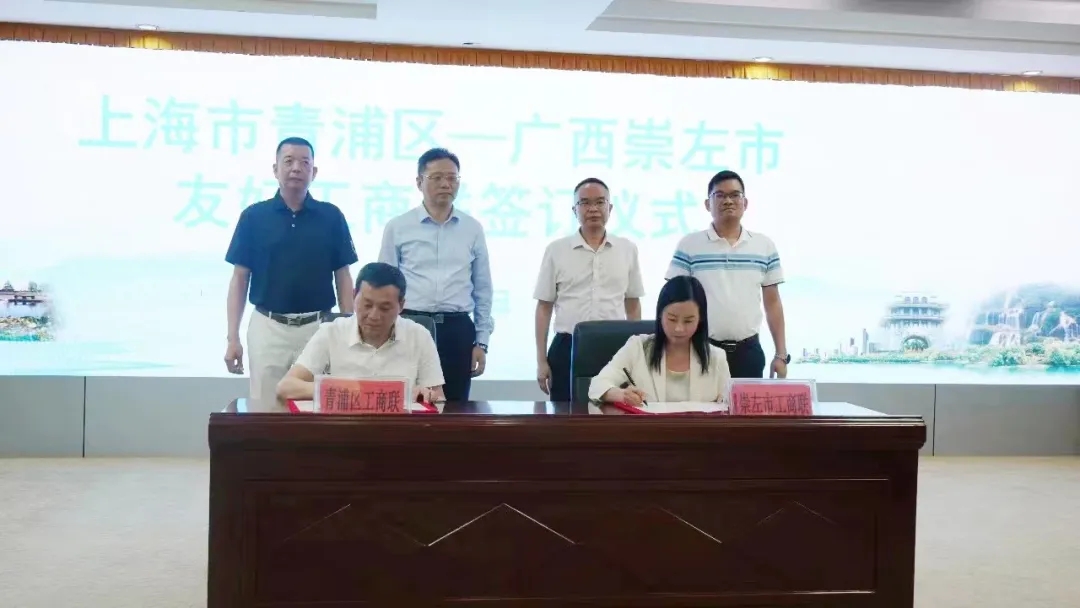 会上,陈卫群与胡小丽分别代表青浦区工商联与崇左市工商联签订了友好协议,青浦、崇左两地领导进行见证。
