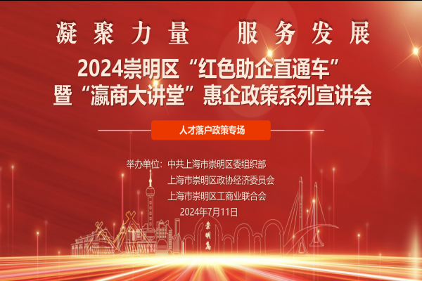 7月11日下午,2024崇明区“红色助企直通车”暨“瀛商大讲堂”惠企政策系列宣讲会举办人才落户政策专场,全区民营企业家代表100余人参会。本场宣讲会是系列活动的第十场。