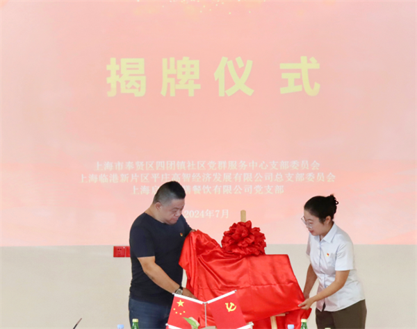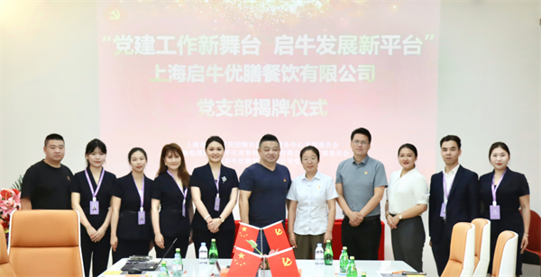 揭牌仪式首先由李敬芝宣读《关于同意成立上海启牛优膳餐饮有限公司支部委员会的批复》文件。随后,李敬芝和黄远超对启牛优膳党支部成立进行揭牌。