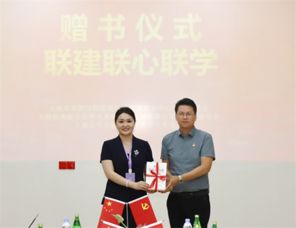 仪式上,朱华新向启牛优膳党支部赠送了党章和党建学习书籍。
