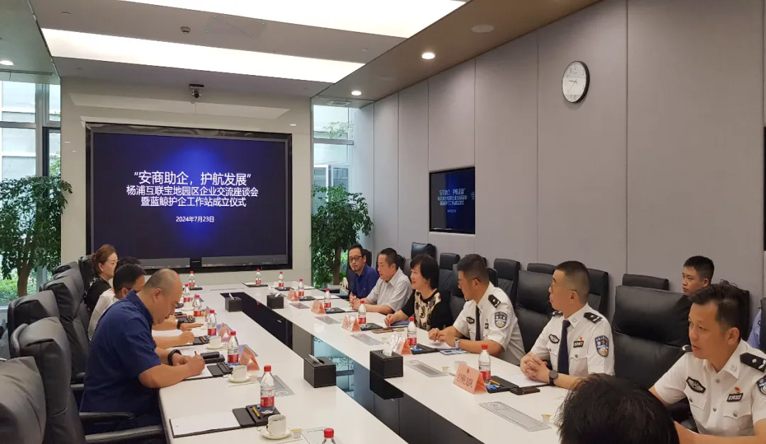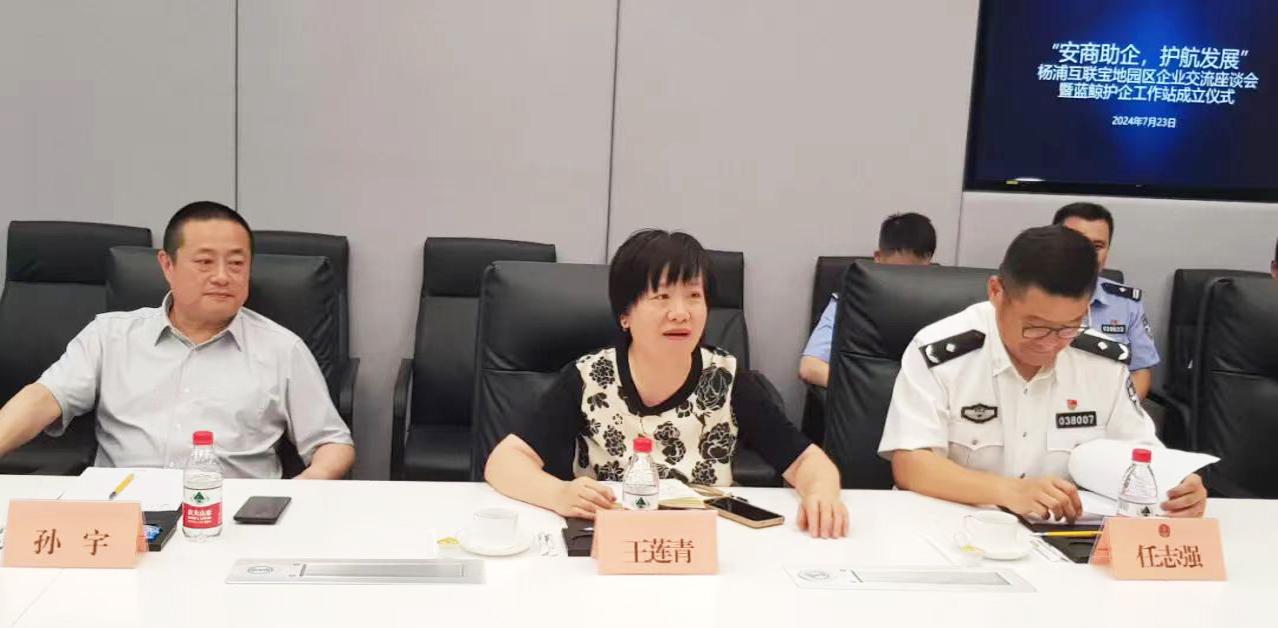 为进一步推进法治服务民营经济高质量发展工作,维护民营企业合法权益,向企业提供零距离、全方位、高效率的法律服务,7月23日,杨浦区工商联联合区公安分局经侦支队在互联宝地园区内举办了杨浦区首个“蓝鲸”护企工作站的揭牌仪式。区委统战部副部长、区工商联党组书记王莲青,区公安分局党委委员、副局长任志强,区工商联副主席孙宇等出席活动。