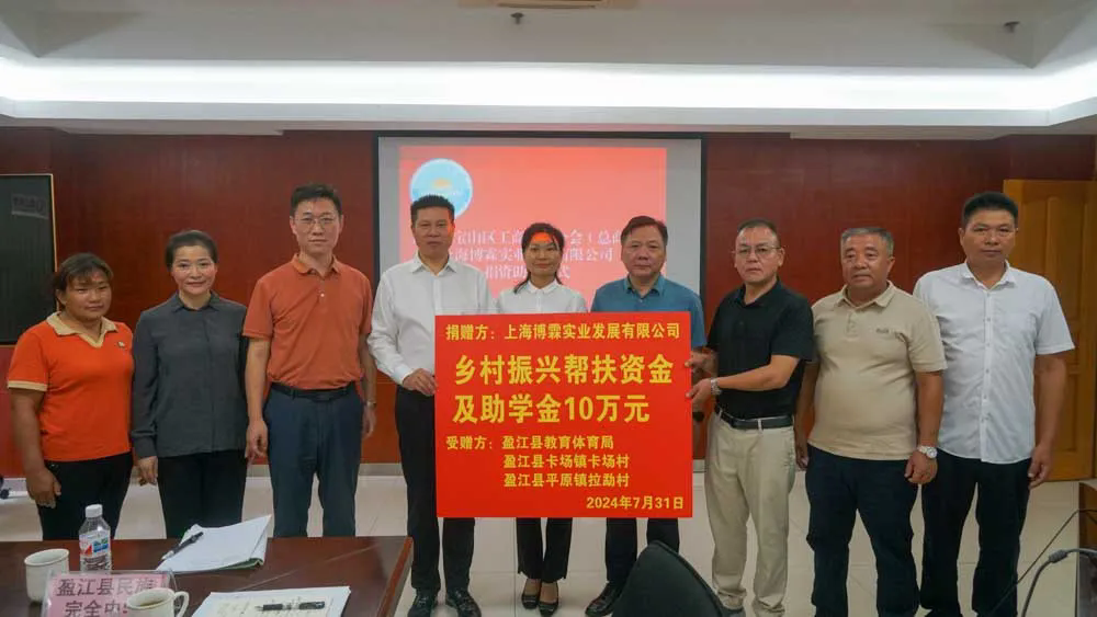 上海博霖实业发展有限公司向盈江县教体局、卡场村委会、拉勐村委会捐赠10万元,主要用于改善当地学校办学条件、提升教育质量,以及投入卡场镇卡场村、平原镇拉勐村的基础设施建设和民生改善项目,以实际行动助力当地教育发展与乡村振兴。