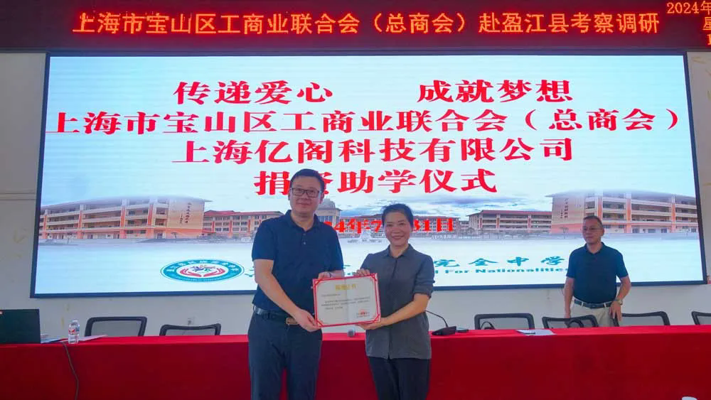 在随后开展的光彩事业活动中,大场镇商会携4家会员企业共同向盈江县支那乡中心小学、盈江县新城乡中学捐赠助学金15万元,用于资助当地学校改善办学条件、提升教学质量,为盈江县的教育事业注入新的活力。