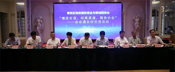 近日,奉贤区商务服务商会与奉城镇商会在上海宏达山庄酒店开展“增进友谊,拓展渠道,服务社会”——第三期会会通友好交流活动。奉贤区商务服务商会会长郑元生,党支部书记、副会长陆建卫,副会长庞明、刘保银、路宝胜和商会部分理事、会员以及秘书处工作人员等20多人参加活动;奉城镇商会会长沈琪,党支部书记、秘书长徐长青,商会名誉会长和部分常务副会长、理事、会员,副秘书长以及秘书处工作人员等20多人参加活动。区委统战部副部长、区工商联党组书记余仲威,奉城镇党委副书记龚健,奉城镇副镇长金叶花,镇商会党建(关建)指导员冯藕华,区商务服务商会党建(关建)指导员金国强等应邀出席活动。