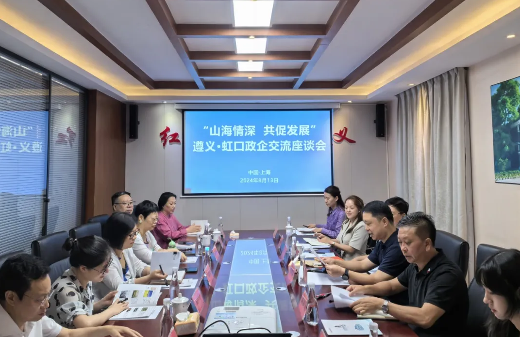 近期,“山海情深 共促发展”遵义·虹口政企交流座谈会在上海举行。虹口区委统战部副部长、区工商联党组书记方薇薇,贵州省遵义市人民政府驻上海(南京、杭州)办事处主任贾世贤,虹口区工商联副主席韩晓峰,凉城新村街道办事处副主任胡宁宁,上海地市商会联合会常务副会长周波及相关部门(商协会)人员参加会议。会议由贾世贤主持。