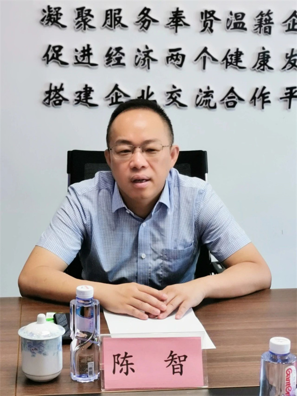 陈智对陈秀华一行的到访表示热烈欢迎,并就商会概况、企业目前面临的困难和短期的前景作了详细介绍。他对奉贤的投资环境表示肯定,特别是在当前经济环境背景下,对温州商人在奉贤的投资前景充满了信心。