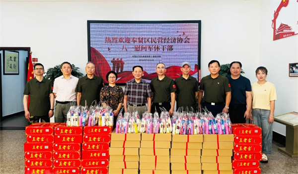 为庆祝中国人民解放军建军97周年,近日,奉贤区民营经济协会会长李国辉携协会秘书处工作人员,带着精心准备的夏令用品来到了区军休所,慰问军队离退休干部,为他们送上了节日的问候,表达了对退役军人的崇高敬意和诚挚祝福。