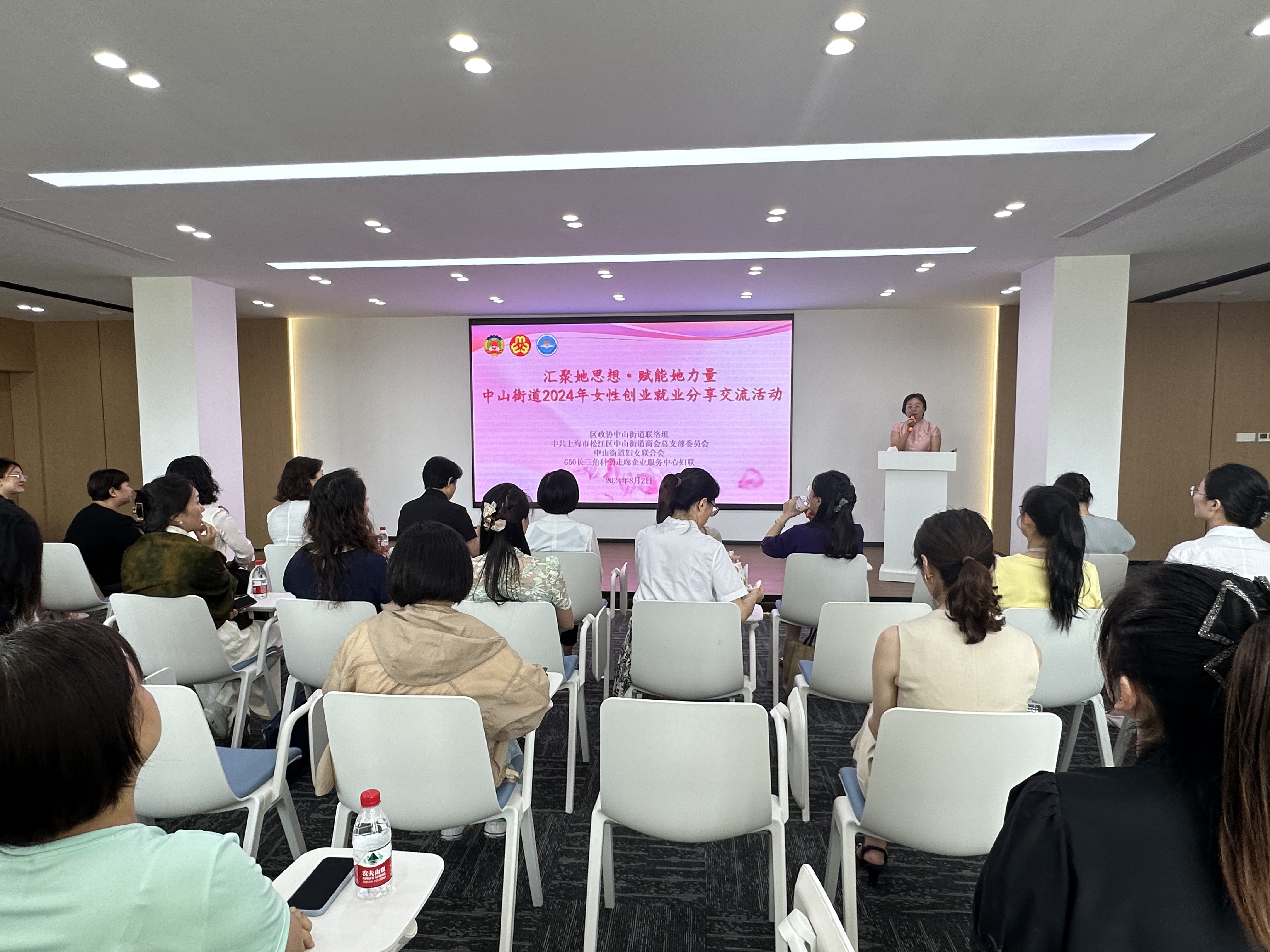 为更好地发挥工作站政协女性委员的示范表率作用,充分展现新时代基层政协女性委员的风采与担当,近日,松江区中山街道商会党总支联合街道政协委员工作站、街道妇联共同举办“汇聚她思想·奋进新时代”女性创业就业分享交流活动,邀请政协女性委员为中山经济社会发展和妇女职业发展建言献策。街道商会名誉会长、街道政协委员工作站站长、党工委副书记胡文辉出席活动,街道商会会员企业代表、工作站政协委员代表、区女企业家协会会员代表等50余人参加本次活动。