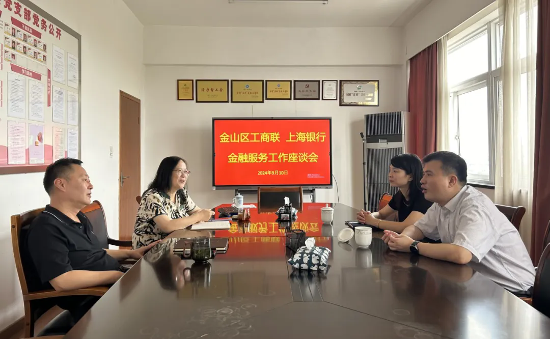 为提升民营企业金融服务效能,搭建全方位金融服务平台,推动“政会银企”四方合作机制再上新台阶,9月10日,金山区工商联与上海银行、宁波银行分别召开金融服务工作座谈会。区人大常委会副主任、区工商联主席、区二级巡视员余雷主持会议。上海银行金山支行行长沈喆、宁波银行金山支行行长王芳出席会议。