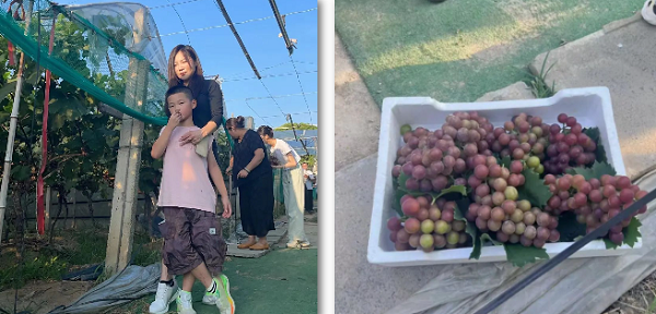 现场,大家手持果篮,穿梭于郁郁葱葱的梨树、葡萄树之间,亲手采摘下颗颗饱满的果实。