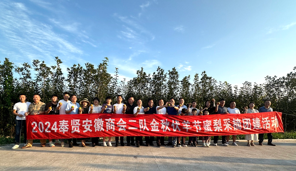 近日,奉贤区安徽商会二队在上海贤王果米蜜梨专业合作社开展金秋伏羊节蜜梨、葡萄采摘团建活动。商会二队指导员王国谈、队长何光林及各队组30余人携家人参加。商会监事长高振、执行会长刘锦保应邀参加。