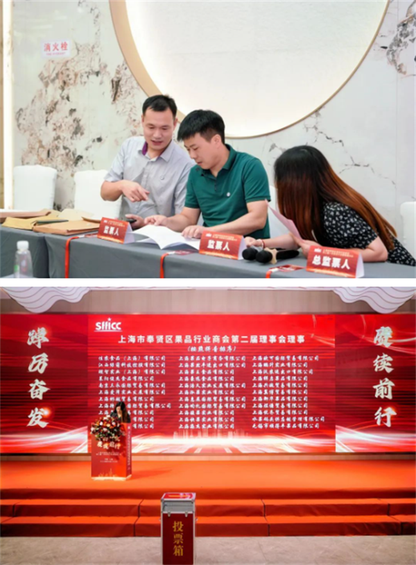 第一次理事会会议经过无记名投票,选举出上海豪远食品有限公司等10家单位当选上海市奉贤区果品行业商会副会长单位;上海爱泽实业发展有限公司等5家单位当选上海市奉贤区果品行业商会常务副会长单位;上海御华果品有限公司当选上海市奉贤区果品行业商会会长单位。