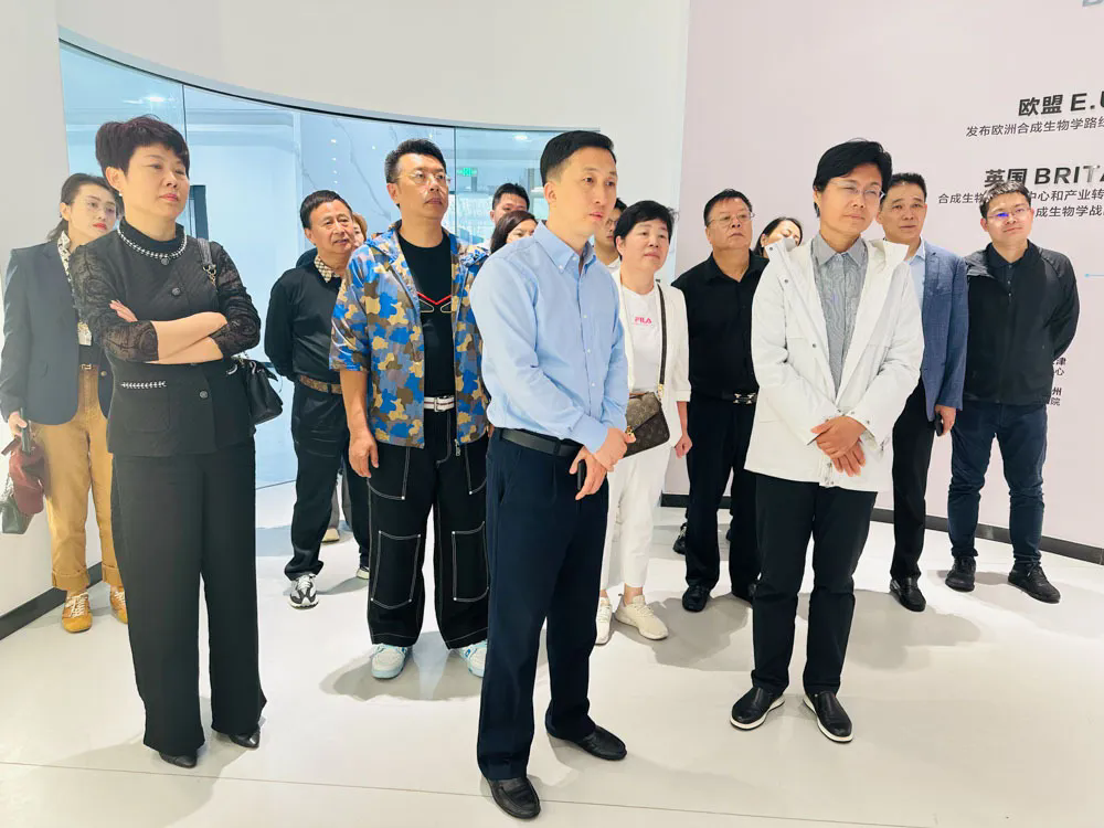 考察团来到南京师范大学常州合成生物学产业研究院,了解了研究院在合成生物学领域的最新科研成果,包括生物材料合成、生物制造技术及绿色产业示范项目等。