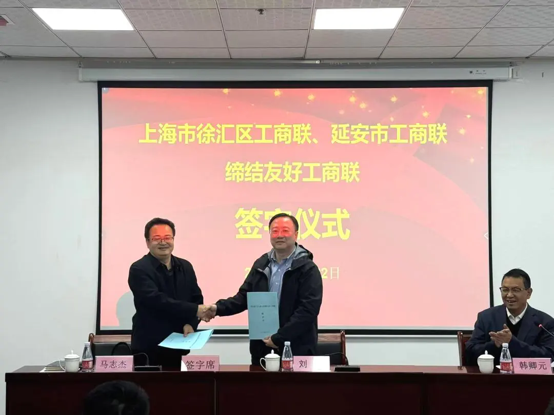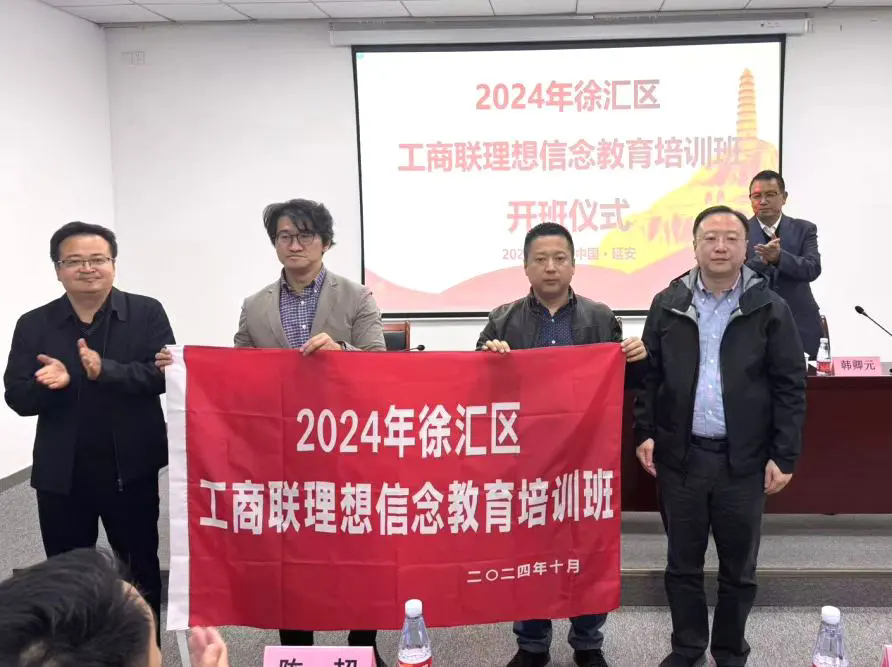 延安市工商联秘书长马志杰欢迎徐汇的企业家们走进延安,希望能通过此次培训加深两地企业间的联系,提升企业家精神。随后,徐汇区工商联与延安市工商联缔结友好工商联,并一同为学员们授培训班班旗。
